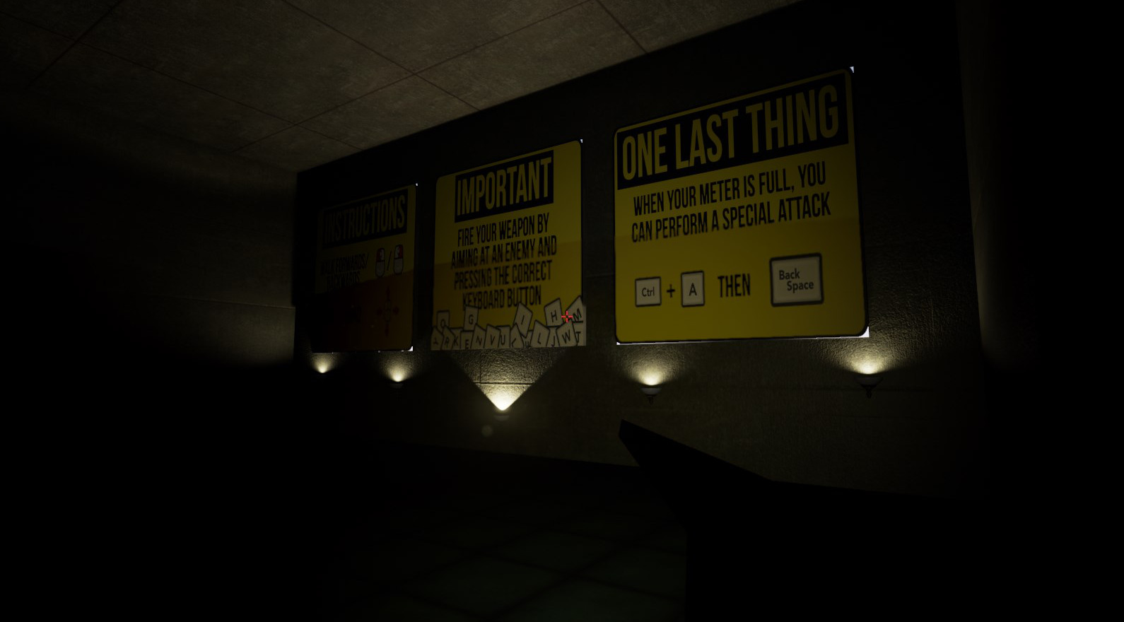 Survive for as long as possible as you are hunted by murderous letters of the alphabet. You have a weapon which can kill the letters; but it will only fire when you press the matching key on your keyboard. This game was made in a 48 hour game jam, with a few friends.